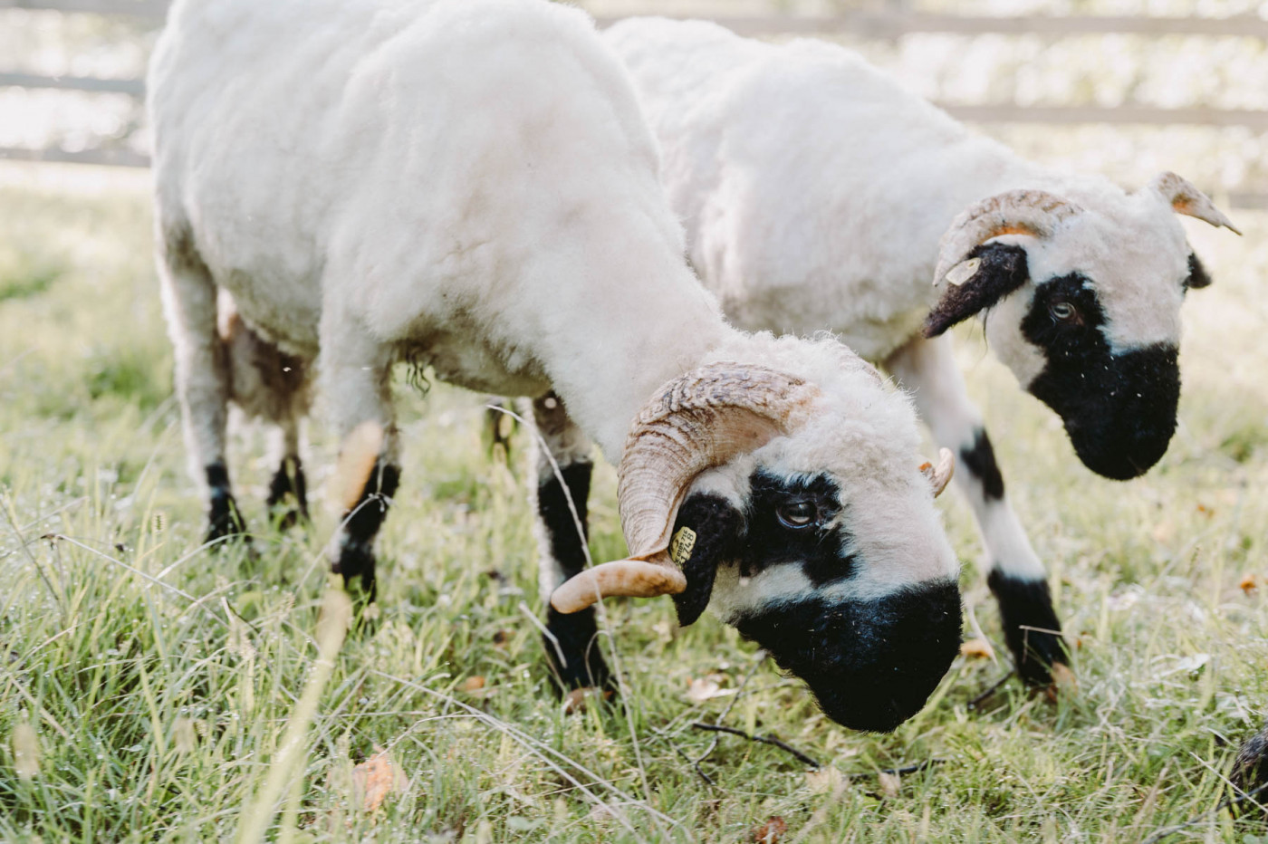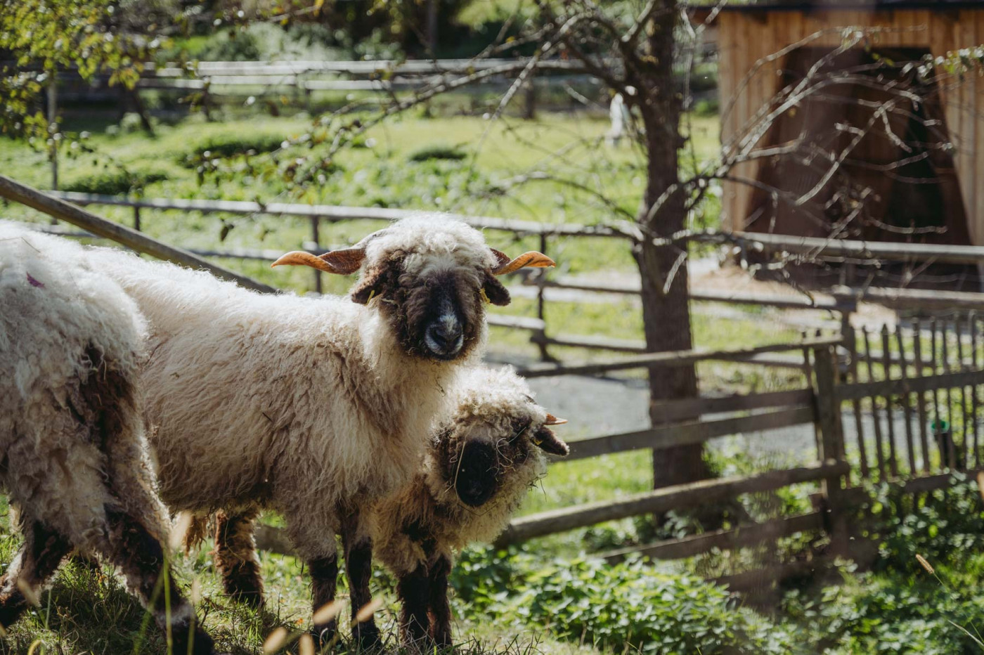 Im Gehege der Schafe geht es immer gemächlich zu: Unsere Walliser Schwarznasen, die für ihre schwarzen Beine und Nasen auffallen, der sich deutlich vom lockigen weißen wolligen Körper abheben, lassen sich selten aus der Ruhe bringen. Die Rasse stammt aus dem Schweizer Kanton Wallis. Das Schwarznasenschaf war noch vor einigen Jahrzehnten eine seltene und gefährdete Rasse - ihr Bestand hat sich inzwischen gut erholt.