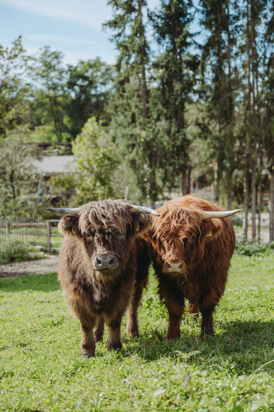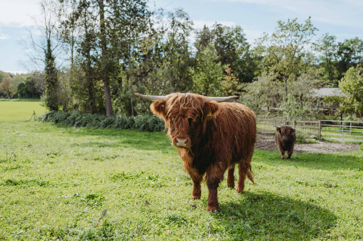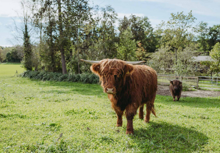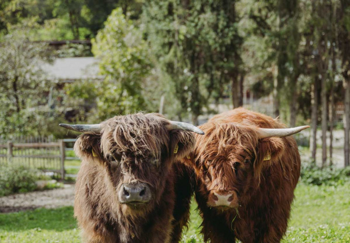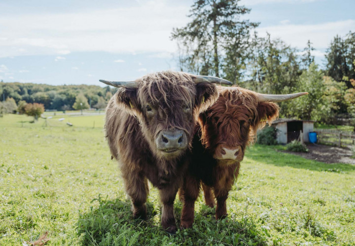 Minnie und Holly - das sind unsere größten und wohl auch beeindruckendsten Tiere am Landgut. Auch wenn die langen Hörner vor allem unseren kleinen Besucher nicht ganz geheuer sind - die beiden Highland-Damen lieben es gemächlich und bedächtig und begrüßen unsere BesucherInnen meist freundlich und sehr neugierig.