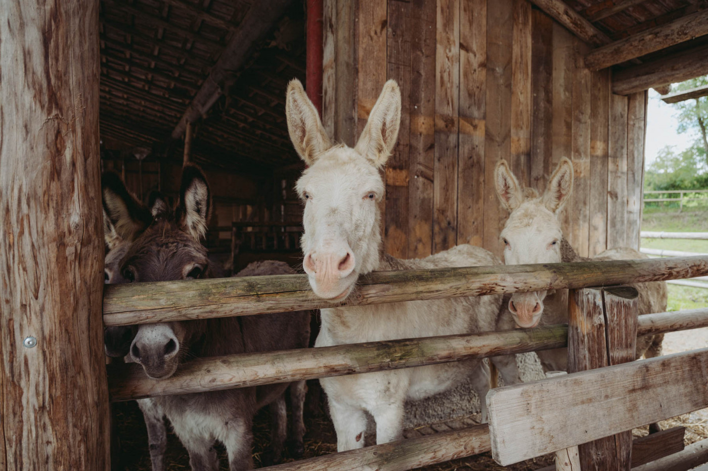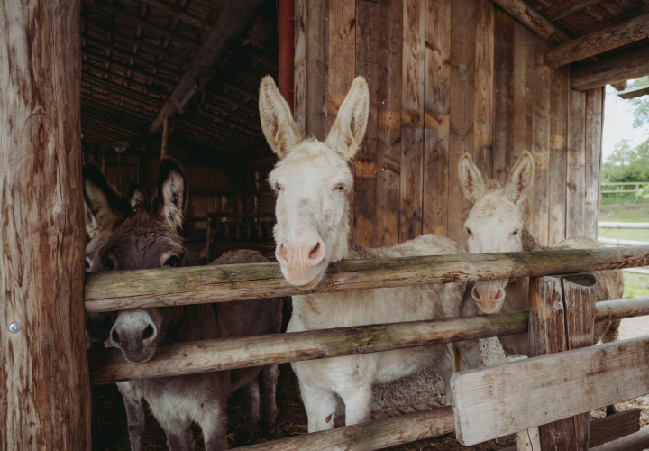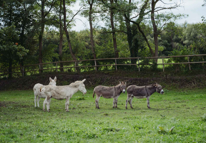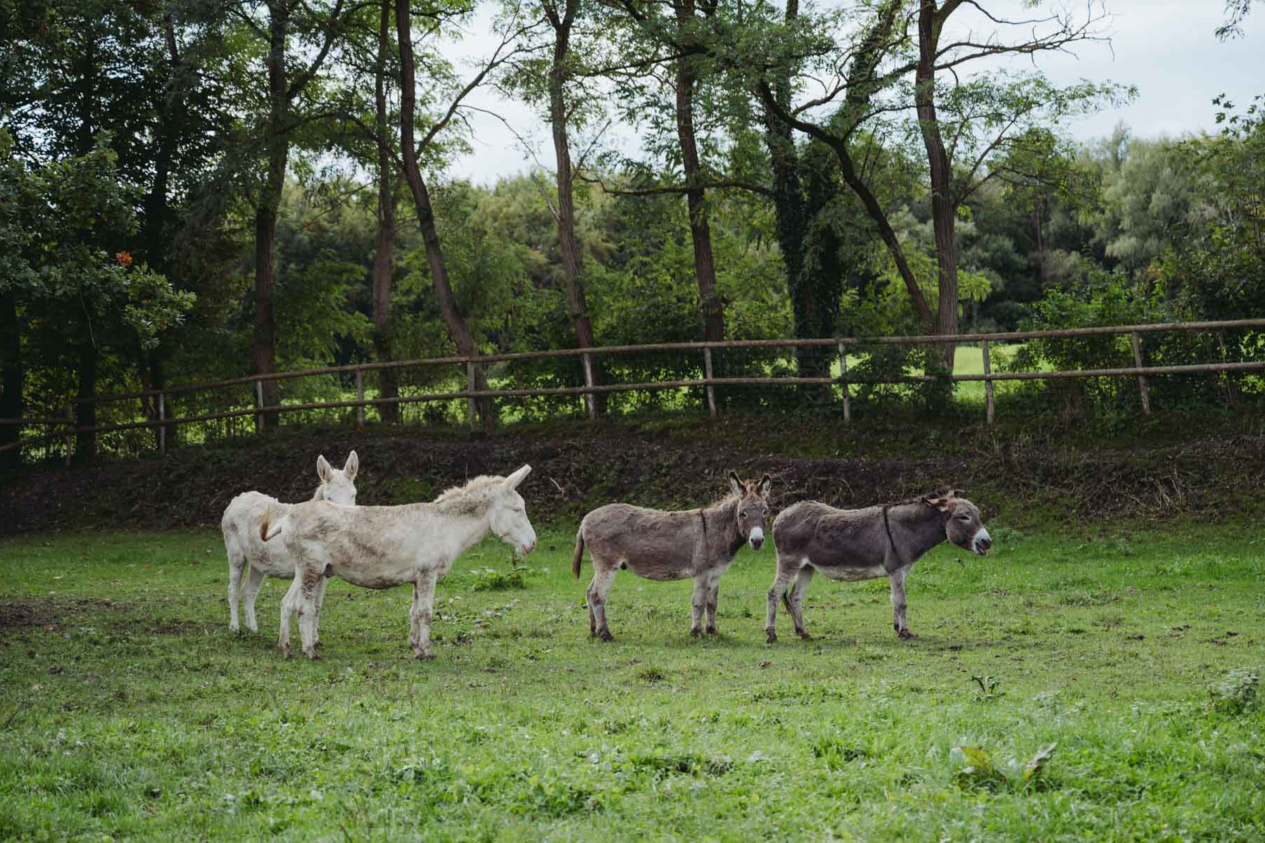 Unsere beiden Barockesel Rudi und Robby sowie die beiden Hausesel Paula und Georgie waren eine der ersten Bewohnerinnen am Landgut. Extrem zutraulich, immer gut gelaunt und sehr verspielt, sind sie die besten Freunde und seit vielen Jahren ein vertrautes Team. Weil die Frage immer wieder kommt: Der Barockesel, auch österreichisch-ungarischer weißer Esel genannt, ist kein Albino, sondern wurden ähnlich wie weiße Schimmel zur Barockzeit unter den Habsburgern in Österreich gezüchtet. Sie gelten als seltene und extrem gefährdete Rasse. Besonders in Österreich widmet man sich seit einigen Jahren wieder verstärkt der Zucht und Erhaltung der Tiere. Auch Robby und Rudi stammen aus einer niederösterreichischen Zuchtfamilie. Paula und Georgie waren die ersten Jahre bei anderen Haltern und sind schon in Bayern groß geworden. Sie haben vor einigen Jahren einen Platz bei uns gefunden und werden auch immer wieder für Eselwanderungen eingesetzt.
