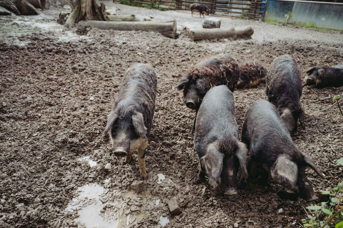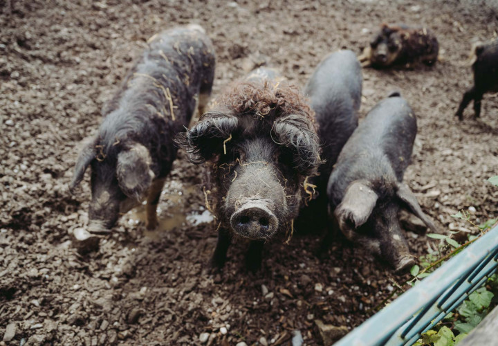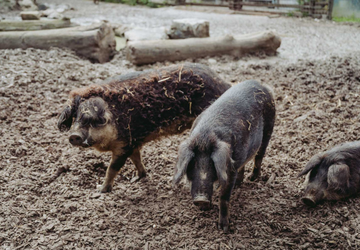 Unsere Wollschweine fühlen sich sauwohl, das kann man im Gehege immer wieder aufs Neue gut beobachten. Die Mangalitzas fallen besonders durch ihr lockiges Haar auf, sie stammen ursprünglich aus Ungarn. Extrem anpassungsfähig und robust, genießen sie Sommer wie Winter die Sonne im Freien. Doch nicht nur ihr Aussehen ist einzigartig, auch das Fleisch der Mangalitzas ist besonders schmackhaft. Unsere Wollschweine sind Teil der „Saugenossenschaft“ - ein Programm, mit dem wir Interessierten die Möglichkeit bieten, die Patenschaft für ein Schwein auf unserem Hof zu übernehmen - das sogenannte „Schweineleasing“.