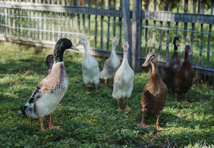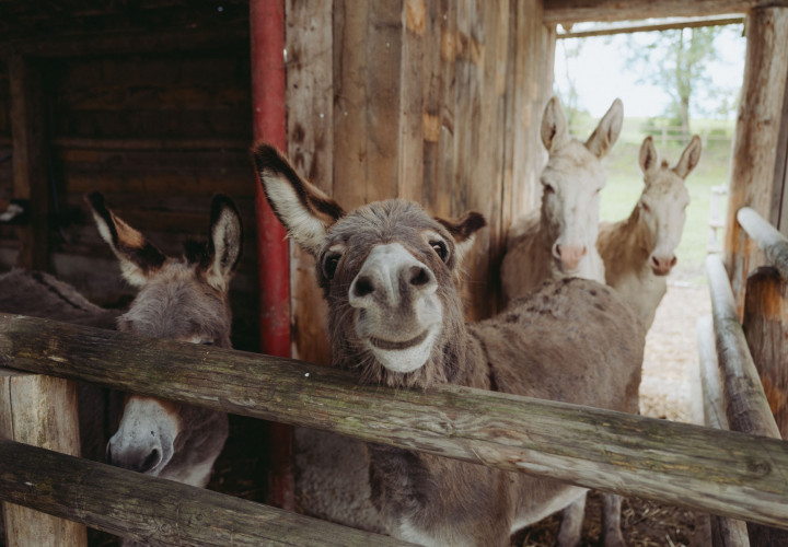 Barockesel und Hausesel, Cattles, Wollschweine, Deutsche Riesen und Meerschweinchen, Orpington Enten, Alpakas, Waliser, Schwarznasen, Zwergziegen, Hofhund Barney
