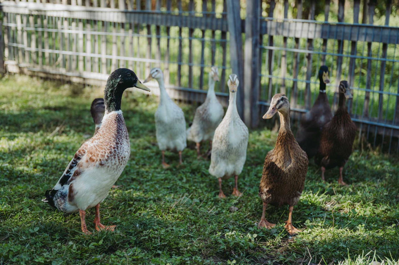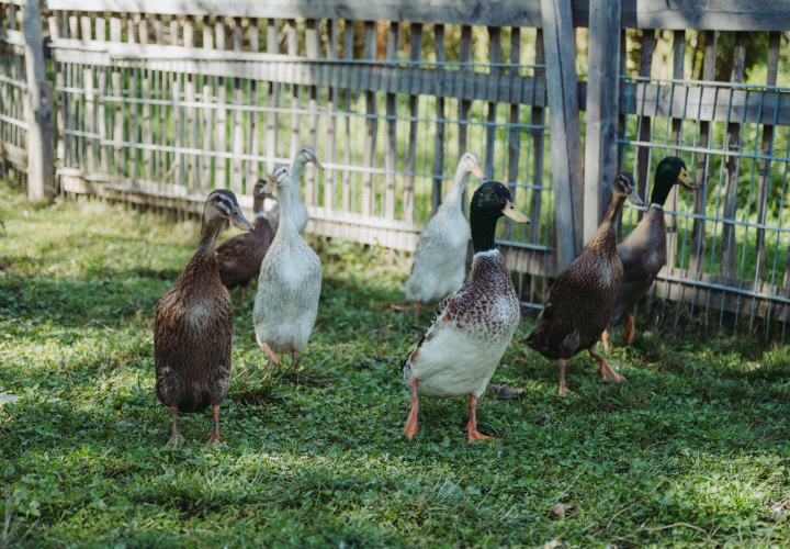 In der hinteren Ecke des Hofes, Richtung Einfahrt quakt unsere stattliche Entenfamilie meist lautstark vor sich hin. Ein Entepärchen haben wir vor einiger Zeit aus dem Tierheim Starnberg geholt, seither fühlen sie sich bei uns außerordentlich wohl und haben sich auch kurze Zeit nach ihrem Umzug schon fröhlich vermehrt.