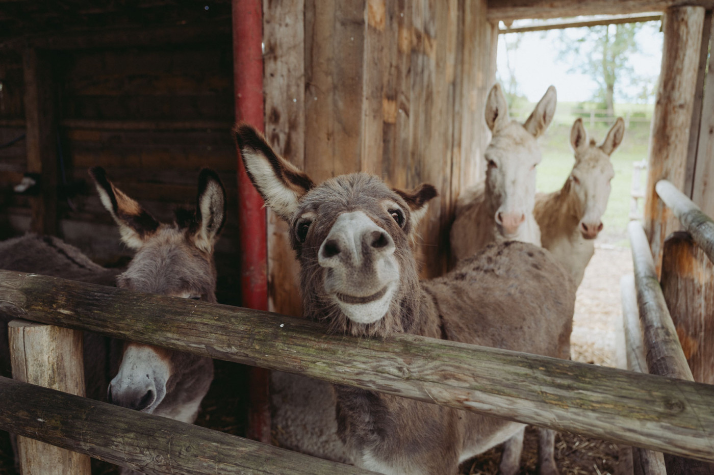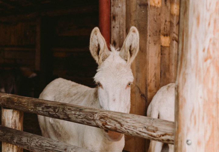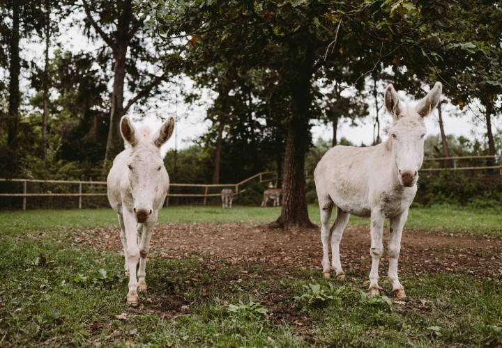 Unsere beiden Barockesel Rudi und Robby sowie die beiden Hausesel Paula und Georgie waren eine der ersten Bewohnerinnen am Landgut. Extrem zutraulich, immer gut gelaunt und sehr verspielt, sind sie die besten Freunde und seit vielen Jahren ein vertrautes Team. Weil die Frage immer wieder kommt: Der Barockesel, auch österreichisch-ungarischer weißer Esel genannt, ist kein Albino, sondern wurden ähnlich wie weiße Schimmel zur Barockzeit unter den Habsburgern in Österreich gezüchtet. Sie gelten als seltene und extrem gefährdete Rasse. Besonders in Österreich widmet man sich seit einigen Jahren wieder verstärkt der Zucht und Erhaltung der Tiere. Auch Robby und Rudi stammen aus einer niederösterreichischen Zuchtfamilie. Paula und Georgie waren die ersten Jahre bei anderen Haltern und sind schon in Bayern groß geworden. Sie haben vor einigen Jahren einen Platz bei uns gefunden und werden auch immer wieder für Eselwanderungen eingesetzt.
