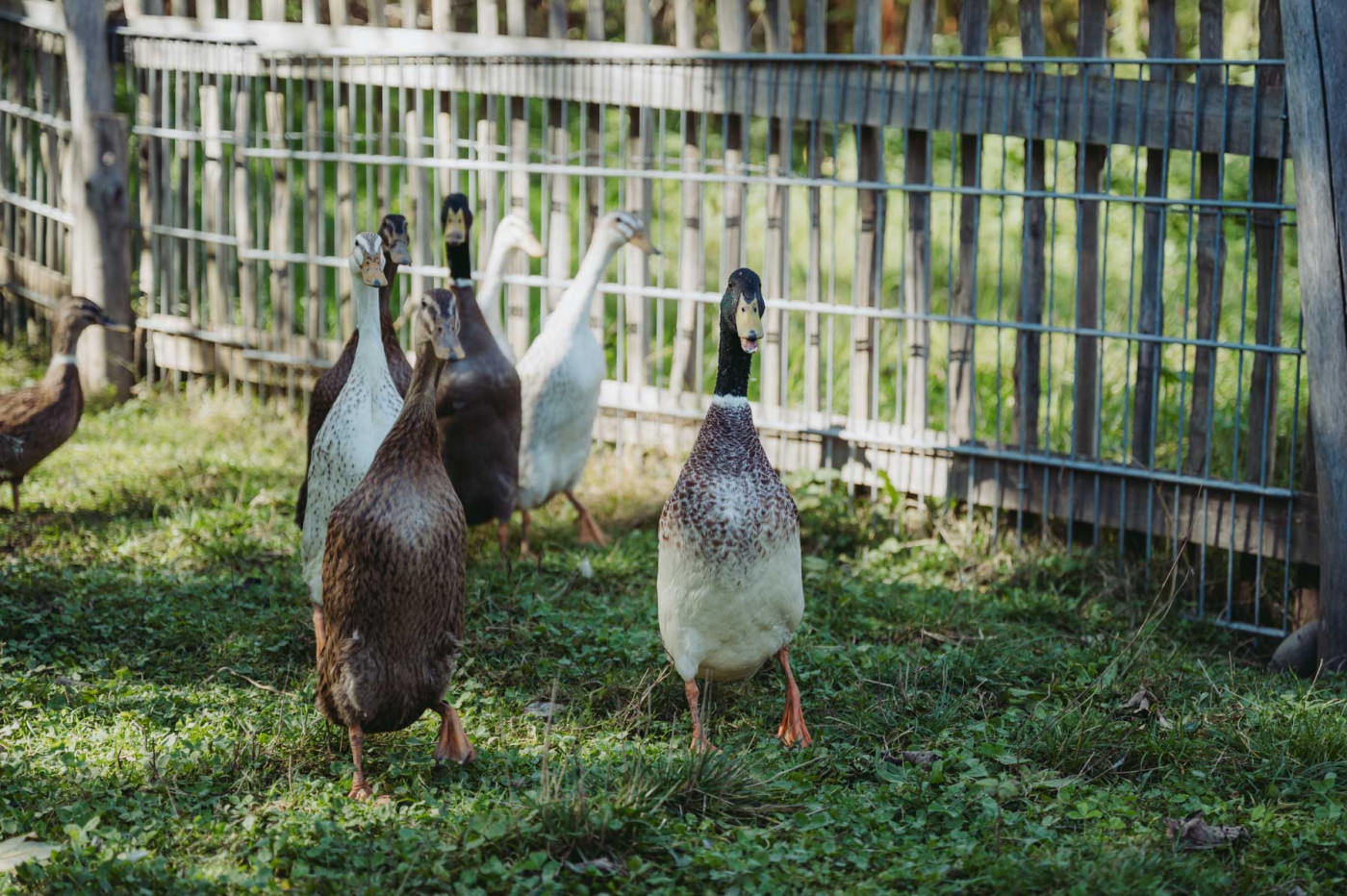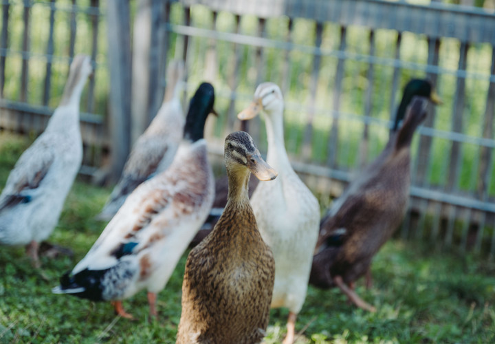 In der hinteren Ecke des Hofes, Richtung Einfahrt quakt unsere stattliche Entenfamilie meist lautstark vor sich hin. Ein Entepärchen haben wir vor einiger Zeit aus dem Tierheim Starnberg geholt, seither fühlen sie sich bei uns außerordentlich wohl und haben sich auch kurze Zeit nach ihrem Umzug schon fröhlich vermehrt.
