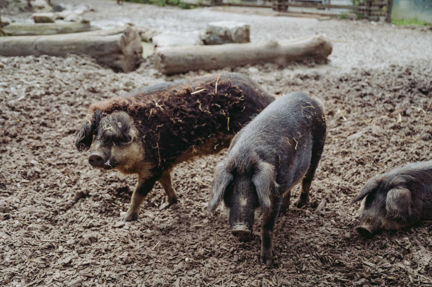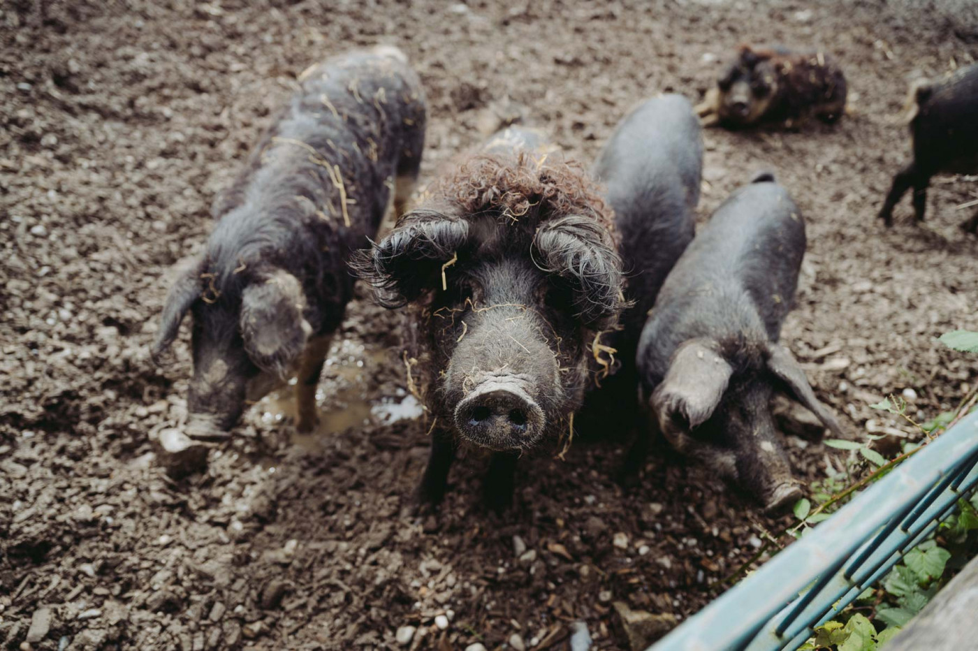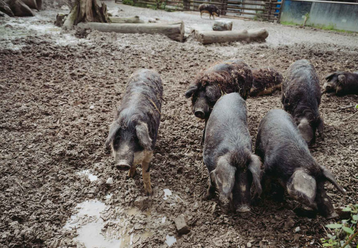 Unsere Wollschweine fühlen sich sauwohl, das kann man im Gehege immer wieder aufs Neue gut beobachten. Die Mangalitzas fallen besonders durch ihr lockiges Haar auf, sie stammen ursprünglich aus Ungarn. Extrem anpassungsfähig und robust, genießen sie Sommer wie Winter die Sonne im Freien. Doch nicht nur ihr Aussehen ist einzigartig, auch das Fleisch der Mangalitzas ist besonders schmackhaft. Unsere Wollschweine sind Teil der „Saugenossenschaft“ - ein Programm, mit dem wir Interessierten die Möglichkeit bieten, die Patenschaft für ein Schwein auf unserem Hof zu übernehmen - das sogenannte „Schweineleasing“.